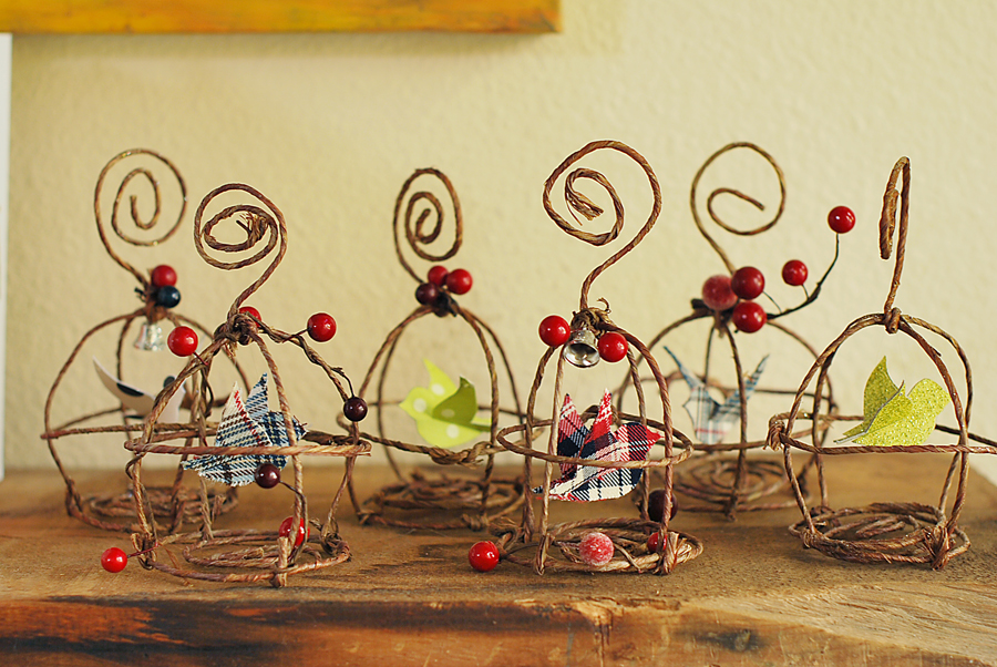 16. Embellish the cage to your hearts desire! You can spray the cage with adhesive glue and sprinkle glitter on it, or you can wrap Christmas berries around the wires. A few more options are bells, dried flowers, or you can leave it a la naturale.